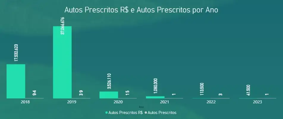O sistema também evidencia o número de autos que já prescreveram, incluindo o montante financeiro correspondente, bem como indica quantos autos foram cancelados, seja por decisão judicial, seja administrativamente.